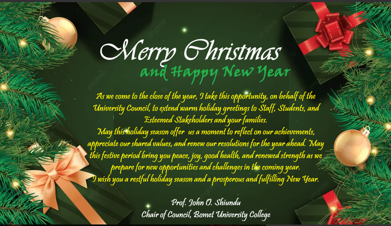 Welcome to Bomet University College. We are delighted to have you as part of our vibrant academic community. At Bomet University College, we are committed to providing quality education, fostering innovation, and shaping future leaders.